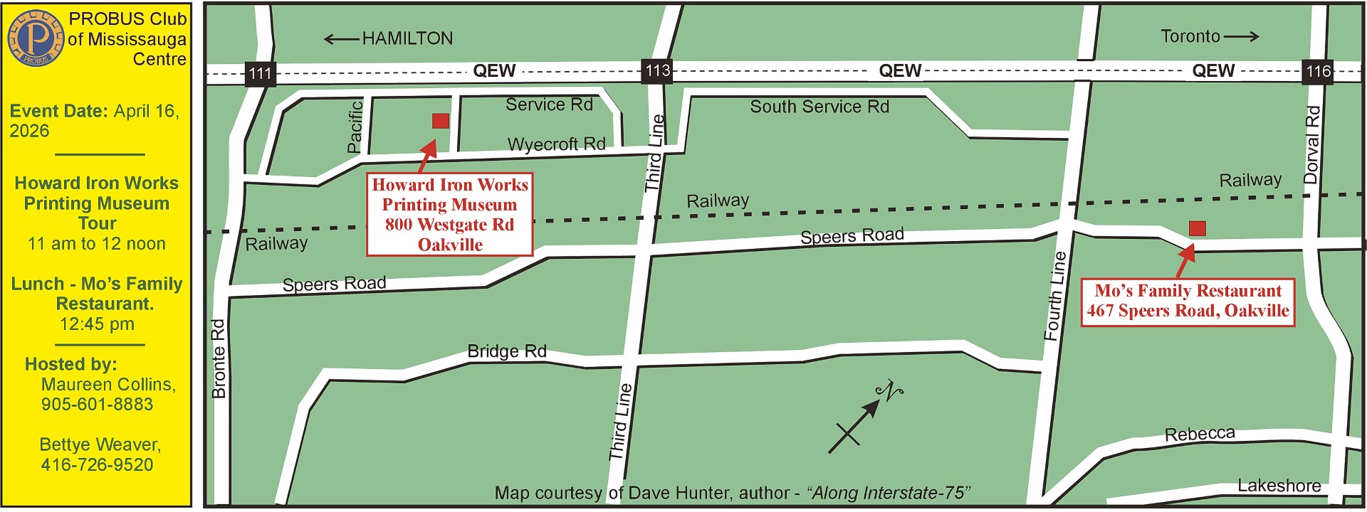 LUNCH: 12:45 pm – Mo’s Family Restaurant (467 Speers Rd. Oakville)